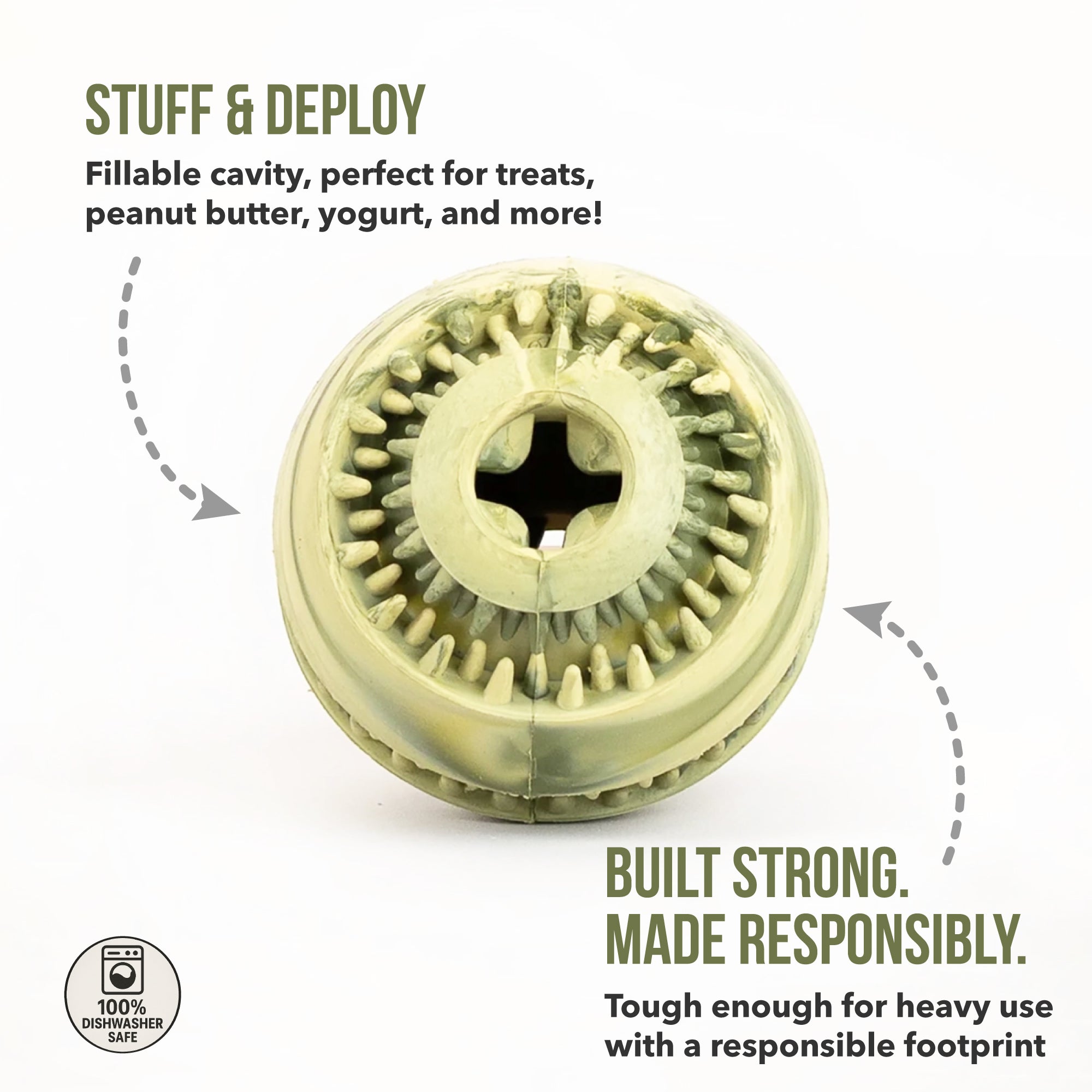 Your dog will love this military-grade, camouflage dog toy made from natural rubber. Hours of fun and the toy massages the gums. BLUF, your dog chews the hell out of this instead of your shoes!