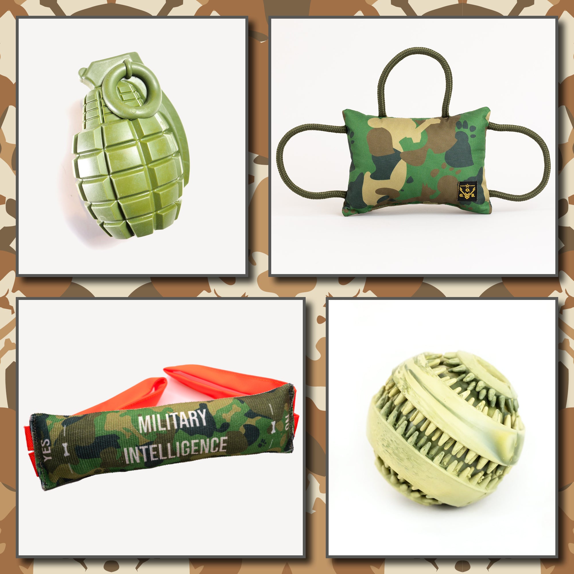 If your canine companion is a real trooper who loves a challenge, the Rugged Play Arsenal is built for them. This bundle is your go-to armory of durable, battle-tested toys that can take whatever your dog dishes out. From the grenade toy to the bite pillow, every piece of this arsenal is designed to withstand the roughest play and keep your pup engaged.