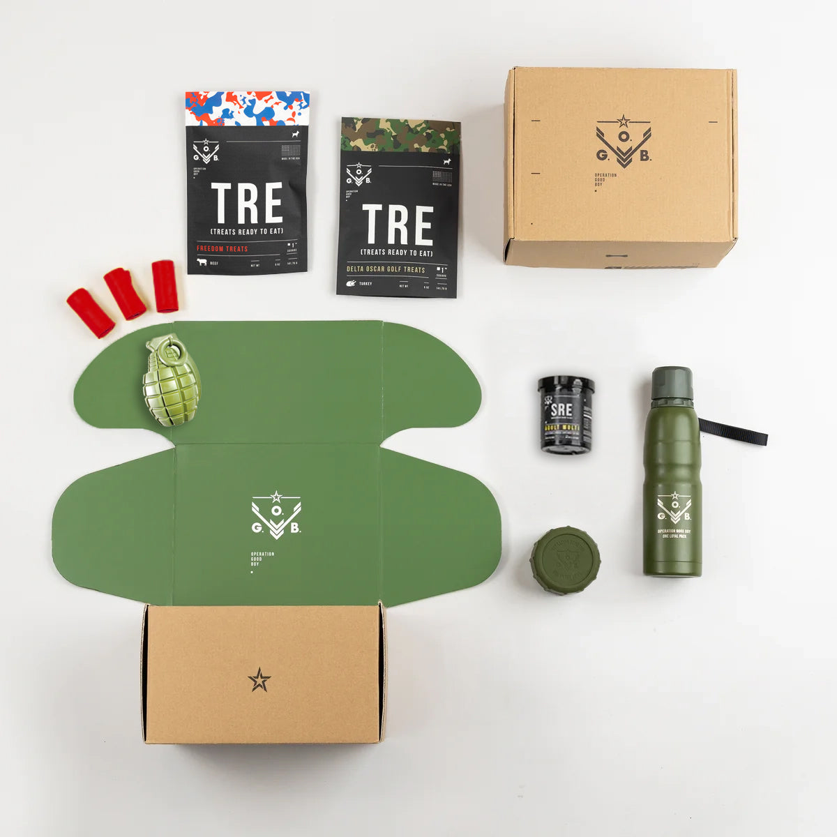Our OGB gift boxes are themed around the most memorable military experiences and perfect for that hard to buy for person or as a treat for yourself and your dog! Enlist Your K-9 Today.