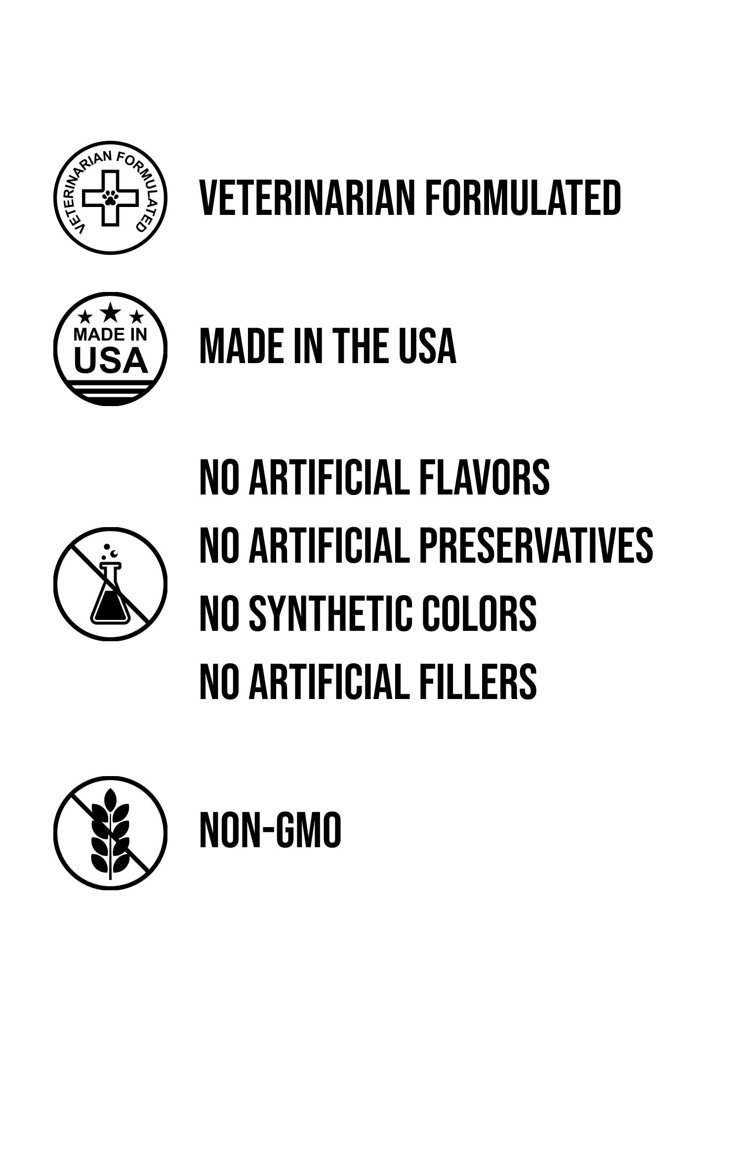 Our veterinary formulated supplements are crafted using AAFCO defined ingredients. Supplements are made in the USA and designed to meet the nutritional needs of active, working dogs - while making training a breeze with easy, tasty positive reinforcement.